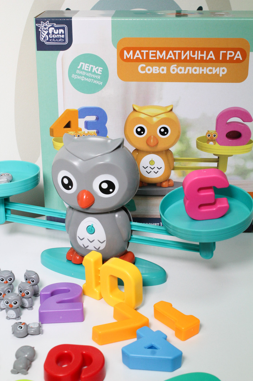 Інтерактивна математична гра "Терези з совами" — це захоплююча гра, яка допоможе вашому малюку цікаво практикувати навички рахунку та логічного мислення.