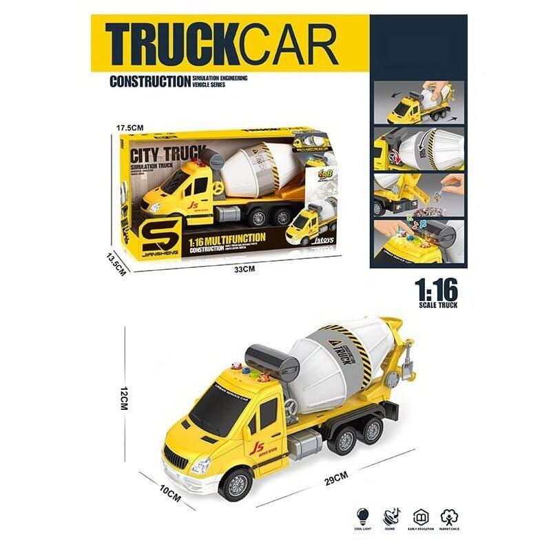 Яскрава модель бетонозмішувача стане перлиною Вашої автоколекції! Спецтехніка виконана у характерних кольорах та обладнана широким функціоналом, який принесе море веселощів та додасть грі реалістичності. Така гарна опрацьованість деталей дозволить ближче познайомитися з конструкцією обладнання, а також ближче дізнатися про її призначення й функціонал.